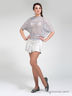 Потрясающий блузон из ткани с крупным перфорированным узором. Широкий округлый вырез горловины. Укороченные цельнокроеные рукава "летучая мышь".