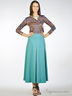 Стильный блузон приталенного кроя. Вырез горловины - лодочка, длинный рукав, яркий рисунок, на спине вырез с завязками. Отличный повседневный вариант.