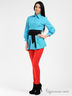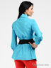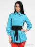 Оригинальный блузон слегка расклешенного силуэта. Выполнен из плотного хб материала. Американский отложной воротник-стойка. Укороченные широкие рукава 7/8 с манжетами на пуговице. Спереди застежка на пуговицы. Талия подчеркнута широким атласным поясом. Прекрасно сочетается с однотонными треггинсами!