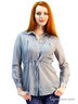Повседневный блузон свободного силуэта. Выполнен из приятной на ощупь ткани. Длинные рукава с манжетами. Отложной воротник-стойка. Спереди застегивается на пуговицы. Завышенная талия дополнена кулиской на веревочке. Полочка украшена рельефными вытачками. Отличный вариант на каждый день!