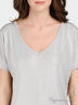Нарядный блузон прилегающего силуэта выполнен из бифлекса с люрексом. V-образный вырез горловины, короткий цельнокроеный рукав, глубокий v-образный вырез на спинке декорирован цепями. Сочетается как с брюками, так и с юбкой.