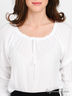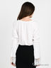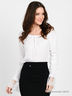 Великолепный блузон прямого кроя из мягкой тонкой вискозной ткани. Округлый вырез горловины на резинке, длинный рукав декорирован кружевными оборками. Отличный вариант для создания праздничного образа.