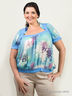 Повседневный блузон свободного силуэта. Выполнен из приятного на ощупь материала. Вырез горловины "каре". Короткие рукава. Модель украшена оригинальным узором. Прекрасный вариант на каждый день!