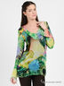 Воздушный блузон прямого силуэта из тонкого шифона с ярким рисунком. V-образный вырез горловины, длинный рукав, застежка на пуговицы на полочке. Края обработаны оверлоком. Отличный вариант для летних прогулок.