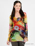 Воздушный блузон прямого силуэта из тонкого шифона с ярким рисунком. V-образный вырез горловины, длинный рукав, застежка на пуговицы на полочке. Края обработаны оверлоком. Отличный вариант для летних прогулок.