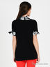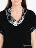 Стильный блузон свободного силуэта выполнен из мягкого джерси с атласными вставками. Атласный ворот с напуском декорирован узловой драпировкой, короткий цельнокроеный рукав декорирован атласной манжетой. Великолепный вариант как для офиса, так и для вечернего отдыха!