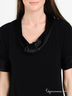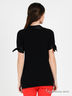 Стильный блузон свободного силуэта выполнен из мягкого джерси с атласными вставками. Атласный ворот с напуском декорирован узловой драпировкой, короткий цельнокроеный рукав декорирован атласной манжетой. Великолепный вариант как для офиса, так и для вечернего отдыха!