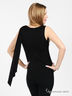 Элегантный блузон с округлым вырезом горловины и лямками выполнен из плотного слегка эластичного шелковистого материала. Лямка декорирована тканью и цепочками со стразами. Идеально для вечерних мероприятий.