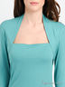 Оригинальный блузон приталенного кроя. Выполнен из эластичного трикотажа. Длинные рукава. Вырез горловины "каре". Изделие украшено стильным брелоком в виде логотипа бренда. Отличный вариант на каждый день!