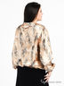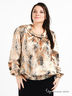 Оригинальный блузон из тонкого, шелковистого материала. Широкий вырез горловины. Отложной воротник дополнен декоративными пуговицами. В плечи добавлены подплечники. Длинные свободные рукава. Манжеты и подол собраны на резинку.