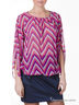 Воздушный блузон свободного силуэта с округлым вырезом горловины и оригинальным рукавом. Изделие украшено рисунком. Яркий вариант на каждый день.