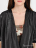 Стильный блузон свободного силуэта из тонкого эластичного трикотажа с шелковистым эффектом. Глубокий V-образный вырез с запахом, цельнокроеный рукав 3/4 на манжете. Отлично смотрится в комплекте с топом.
