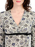Детали: V-образный вырез горловины с запахом, изделие украшено принтами и бархатной лентой с бантиком