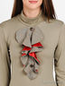 Детали: ворот-стойка, длинный прямой рукав, полочка декорирована отстегивающимся жабо с атласной вставкой