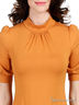 Детали: небольшой ворот-стойка, укороченный рукав посажен на манжету, декоративные сборки