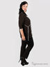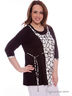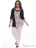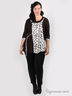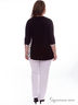 Оригинальный блузон из вискозного материала. Широкий округлый вырез горловины. Облегающие рукава 3/4. На полочке крупная контрастная вставка. Модель дополнена изящными завязками на боку для лучшей посадки по фигуре и для подчеркивания линии талии.