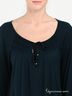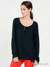 Оригинальный блузон прямого силуэта с круглым вырезом и длинным рукавом на резинке. Выполнен из тонкого эластичного трикотажа. Полочка присборена на многорядную резинку, дополнена завязками. Стильный вариант на каждый день.