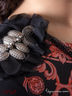 Воздушный блузон свободного силуэта с округлым вырезом горловины. Укороченные рукава 7/8. Изделие выполнено из слегка эластичного материала джерси. Спереди вставка из атласной ткани с узором. Плечики украшены декоративными элементами соединенными между собой многослойной цепью. Будьте стильной и женственной каждый день!