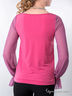 Модный блузон с длинными рукавами, посаженными на манжеты и V-образным вырезом горловины. Изделие декорировано рисунками. Оригинальный вариант на каждый день!