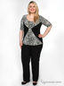 Повседневный блузон с укороченным рукавом и округлым вырезом горловины. Черные вставки визуально делают фигуру стройнее. Изделие украшено принтами. Отличный вариант для тех, кто любит комфорт и качество.