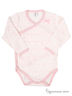 Комплект боди с запахом из натурального хлопка в нежной цветовой гамме. Застежки-кнопки позволяют быстрее одеть и раздеть малыша, а также комфортно и безболезненно лежать малышу на животике. В комплекте боди нежно-розового цвета с контрастным кантом и боди с мелким цветочным рисунком. Идеально подходят как для сна дома, так и в качестве белья на прогулку. Боди имеют застежку для смены подгузника и декорированы декорированы лаконичным бантиком на полочке.