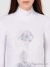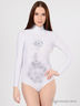 Детали: ворот-гольф, длинный прямой рукав, застежка на два крючка на три позиции в пройме, оригинальный набивной рисунок на полочке