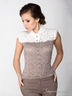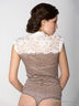 Боди из гипюра с коротким рукавом на пуговицах спереди.