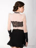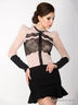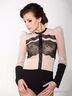 Очаровательное Боди с длинным рукавом. Прозрачные рукава с защипами из гипюра с высокой манжетой на пуговицах. Горловина и полочка отделаны кантом из стрейч-атласа. Воротник-стойка. Нижняя часть - хлопок с эластаном.