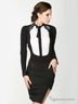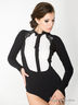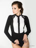 Элегантное Боди из стрейч-шифона с длинным рукавом на пуговицах. Отделка кружевом. Воротник-стойка. Бант из атласа крепится на резинке на верхнюю пуговицу (может отстегиваться).