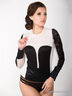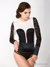 Элегантное боди из гипюра и атласа. Модель с длинными рукавами и округлым вырезом горловины. Модель выполнена из разных по цвету и фактуре тканей. Отличный вариант на каждый день.