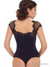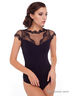 Боди с коротким рукавом. Нижняя часть выполнена из хлопка, верхняя- гипюр и кружево. На спине пуговицы.