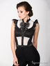 Очаровательное боди с коротким рукавом. Сочетание стрейч-шифона, кружева и гипюра, отделка стрейч-атласом. Нижняя часть - хлопок.