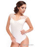 Боди без рукавов. Нижняя часть выполнена из хлопка. Верхняя - кружево и гипюр. Кант спереди и широкие лямки на спине - стрейч-атлас. На спине пуговицы.