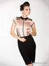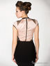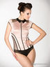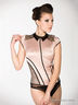 Боди из атласа и кружева. Застежка-молния на спине. Модель с короткими рукавами и отложным воротником.