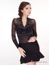 Изысканное Боди из кружева и гипюра. Длинный рукав на высоком манжете с пуговицами, V-образный вырез. Очень красивое и оригинальное оформление спины. Декоративное оформление пояса атласом. Передняя часть Боди на подкладке из сетчатой ткани.
