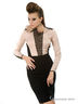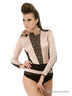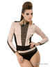 Элегантное боди из стрейч-атласа со вставками из кружева и вискозы. Сзади застежка на молнию. Длинные рукава.