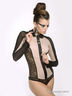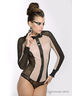 Привлекательное боди с длинными рукавами и отложным воротником. Изделие с вставками из полупрозрачного материала. Идеально подходит для вечернего выхода.