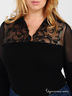 Детали: застежка на два крючка на ластовице, ворот-стойка из кружевной ткани, полочка декорирована сетчатой вставкой с вышивкой