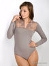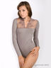 Идеальное боди на все случаи жизни. Одновременно сдержанное и нарядное, удобное и практичное. Ворот оформлен кружевом ришелье. Верхняя часть рукава и область декольте - сетка с гипюром. Рукава и основная часть боди - вискоза.