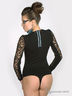 Модное боди из вискозы и кружева с декоративным карманом. Округлый вырез горловины. Длинные рукава. Сзади застежка на молнию.