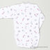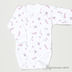 Детали: небольшой ворот-стойка, длинный рукав посажен на манжету, застежка на кнопки на полочке, классическая боди-застежка на кнопки, принты