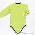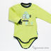 Боди прямого кроя с длинным рукавом. Классическая боди-застежка на кнопках и дополнительная застежка на две кнопки на левом плечике. Полочка украшена аппликациями.