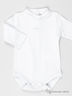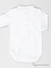 Детали: небольшой ворот-стойка, длинный рукав, застежка на кнопки на спинке, классическая боди-застежка на кнопки в шаговом шве, полочка украшена небольшой вышивкой