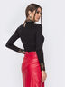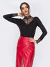 Обтягивающее боди из приятной к телу вискозы. Горловина и манжеты дополнены ажурным кружевом. Высокий воротник регулируется пуговицей сзади. Застёгивается на кнопки. Модель отлично сочетается с юбкой или джинсами.