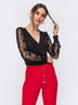 Эффектное боди из вискозы с лифом на запах. Рукав изделия выполнен из ажурного кружева. Застегивается на кнопки. Отлично сочетается как с брюками, так и с юбкой.