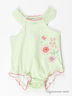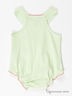 Яркое боди для девочки. Округлый вырез горловины, без рукавов. Снизу застежка на кнопки. Модель украшена оригинальным принтом.