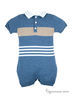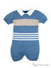 Замечательный вязаный песочник подарит ребенку комфорт и полную свободу движений. Удобная застежка, располагающаяся на спинке имеет не только функциональное, но и декоративное назначение. Выразительный элемент - контрастные полоски, вывязанные в особом ритме придают изделию индивидуальные черты. Освежает изделие стильный белый воротничок. Шаговый шов (внутренняя часть ножки) имеет застежку на кнопках, что существенно облегчает процесс смены подгузника или переодевания ребенка.