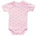 Боди прямого кроя с коротким рукавом застегивается на классическую боди-застежку и на дополнительную застежку на кнопки на левом плечике. Изделие украшено аппликациями.