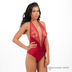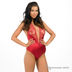 Эротичное боди из тонкой атласной ткани с гипюровыми вставками. Завязывается на шее и застегивается на пуговицы спереди. Сзади выполнен бантик, ластовица с хлопковой вставкой застегивается на три крючка на одну позицию.