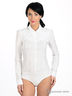 Детали: отложной ворот-стойка, длинный рукав, застежка на пуговицы, манжеты на пуговицах; боди часть - модель бразильяна с классической застежкой на две кнопки